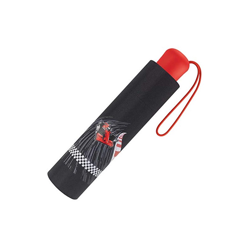 - Scout is one of the largest and safest school case manufacturers. Matching the school bag, there are now the small and lightweight pocket umbrellas in different designs, this one with a racing car. With this umbrella, your child is safely protected from any rain. The reflective strip on the edge of the umbrella casts light in the dark, e.g. from car headlights, immediately and thus creates a good safety effect.