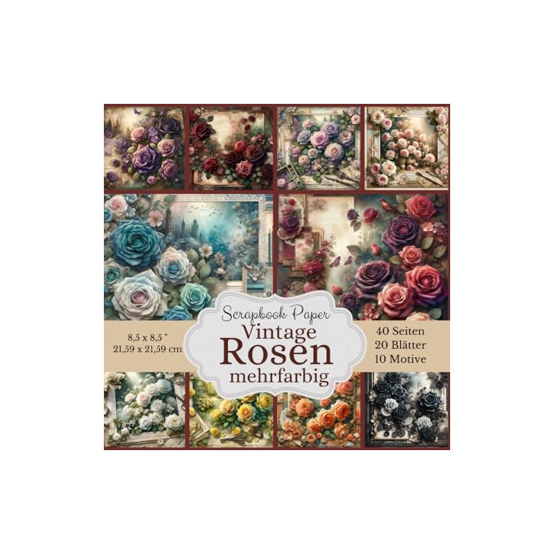 Scrapbook Papier Kollektion: Vintage Rosen mehrfarbig: - 40 Seiten voller nostalgischer Eleganz Verleihen Sie Ihren Scrapbooking-Projekten einen ... Papierkollektion im Vintage-Rosendesign!