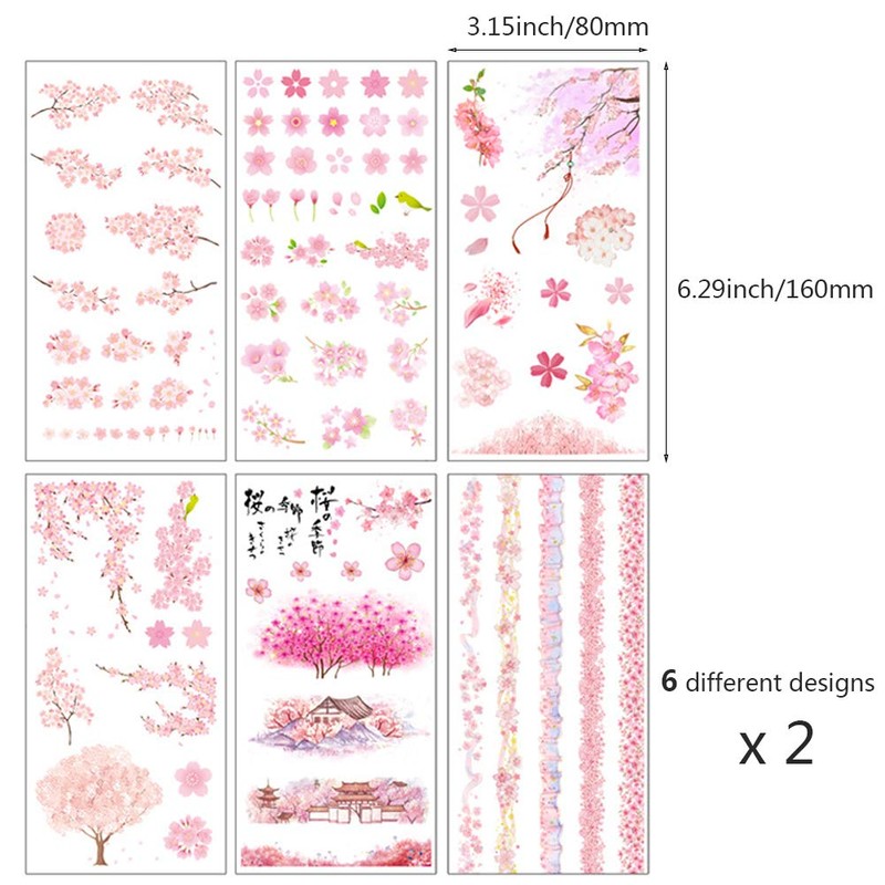 Scrapbook Stickers,Japanese Sakura Washi Stickers,12 Sheets DIY Decorative Cherry Blossoms Paster Decals Sticker for Planner Scrapbooking or Card Making