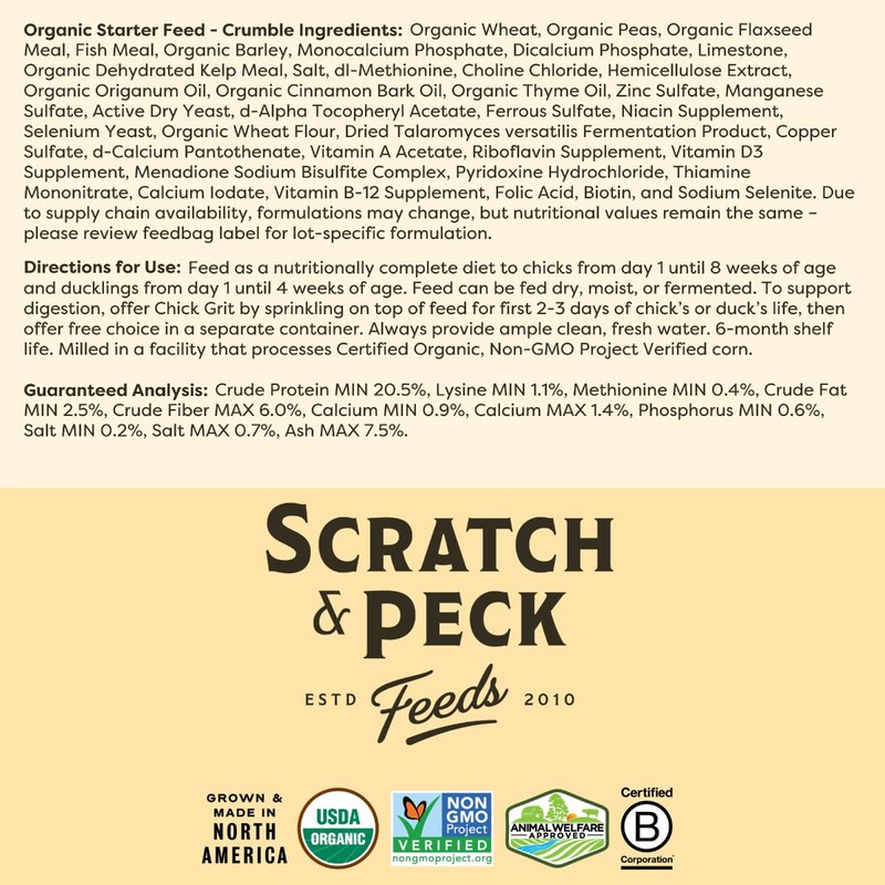 Scratch and Peck Feeds Scratch and Peck Whole Grain Starter Crumbles Chicken and Duck Feed - 25 lbs Bag - Corn-Free and Soy-Free - 20.5% Protein, Certified Organic and Non-GMO Project Verified Chicken Food