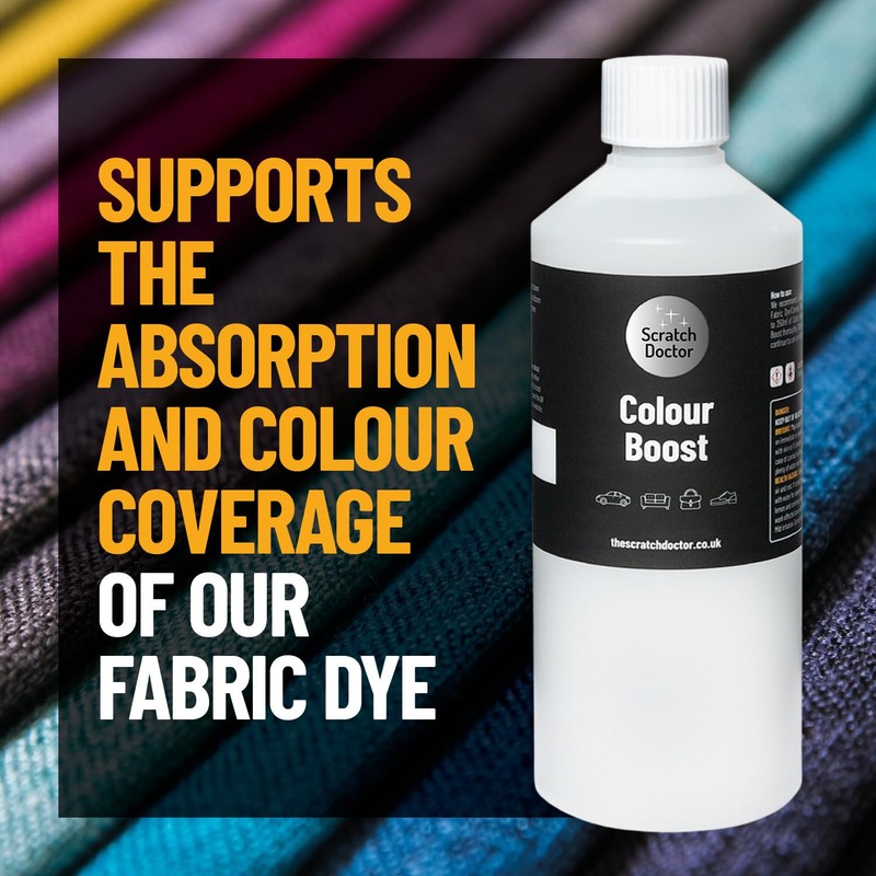 - FOR USE WITH LIQUID FABRIC DYE: The Scratch Doctor Colour Boost Fabric Penetration Solution is designed to support the absorption and colour coverage of our Fabric Dyes. Dilute this Colour Boost Solution with The Scratch Doctor Fabric Dye to help it soak into stubborn fibres, providing a softer and more natural finish.