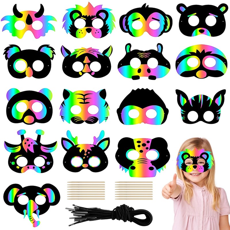- Scratch picture set: you will receive 16 masks for painting children, 16 elastic cords and wooden pens. The ample supply of masks for painting children is perfect for children's DIY craft projects and stimulates their creativity and imagination.