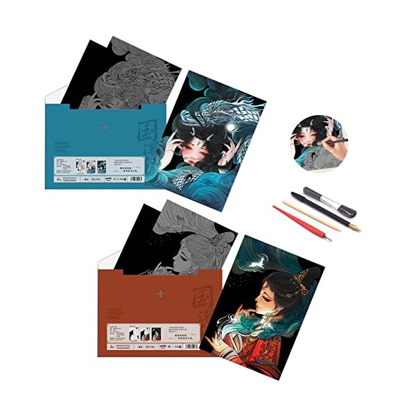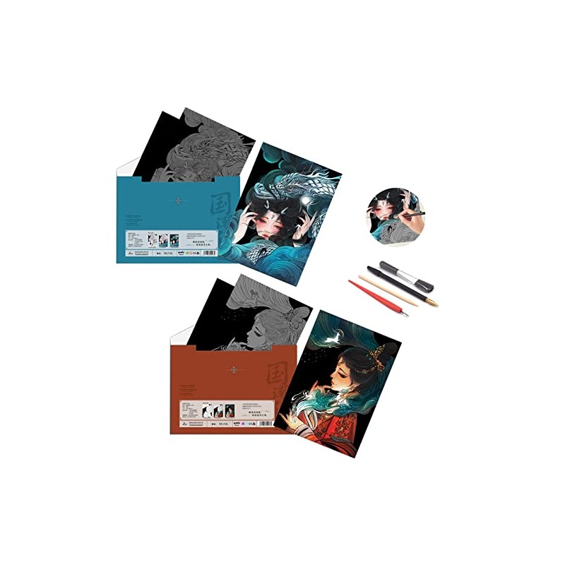 - 💙✔【1. Products Including】- Our scratch rainbow painting art paper is designed according to the original anime characters with high reproduction.Including:2xscratch painting board/2xblank board for Diy scratch painting,1*wooden stylus stick / 1* small red Scraper / 1*scratch pen / 1*black brush.