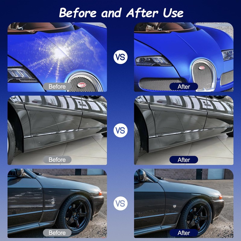 - 【Widely Used】Suitable for slightly scratched,moderate combination scratches,sun patten,twig and nail scratches,bird droppings,water stains,oxidization and other stubborn contaminants.Heavy scratches can be improved with repeated use,but not completely removed.