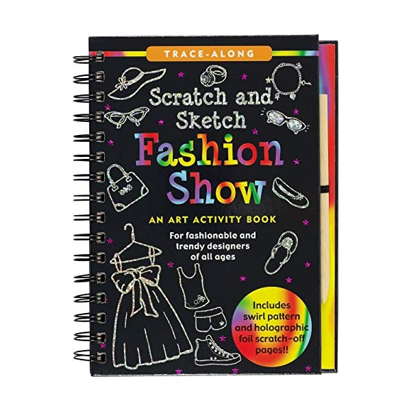 Wire-o bound hardcover 6-3/8 wide x 8-1/2 high (16.2 cm wide x 21.6 cm high) 64 pages (20 scratch-off, 20 illustrated, 20 sketch pages) Shrink-wrapped with a wooden stylus. White outlines on black scratch-off pages create a fun way for younger children (ages 5 and up) to trace illustrations, revealing magnificent colors beneath. Non-toxic. Potential eye irritant. Avoid inhaling particles of scratch coating. Not for children under 5 years. Meets all applicable safety standards.