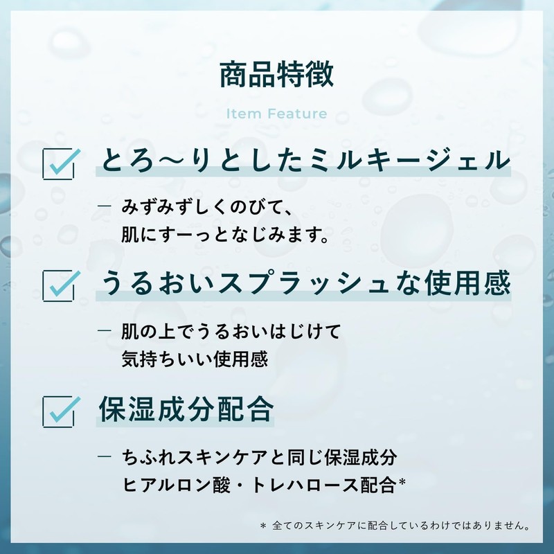 - (Gel type that can be used as a skin care) Moisturizes your skin and provides a comfortable "moisture splash" feeling