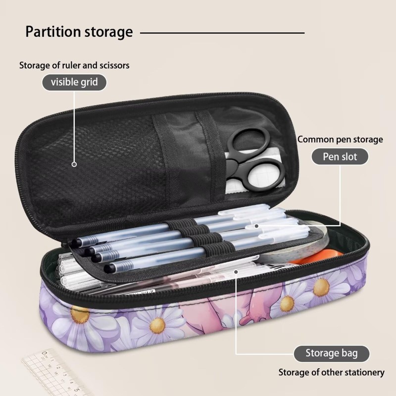 - Compartments Design: 1 visible grid, 4 pen slot, 1 storage bag. The special compartments design of pencil pouch is eazy to separate and organize your different items.
