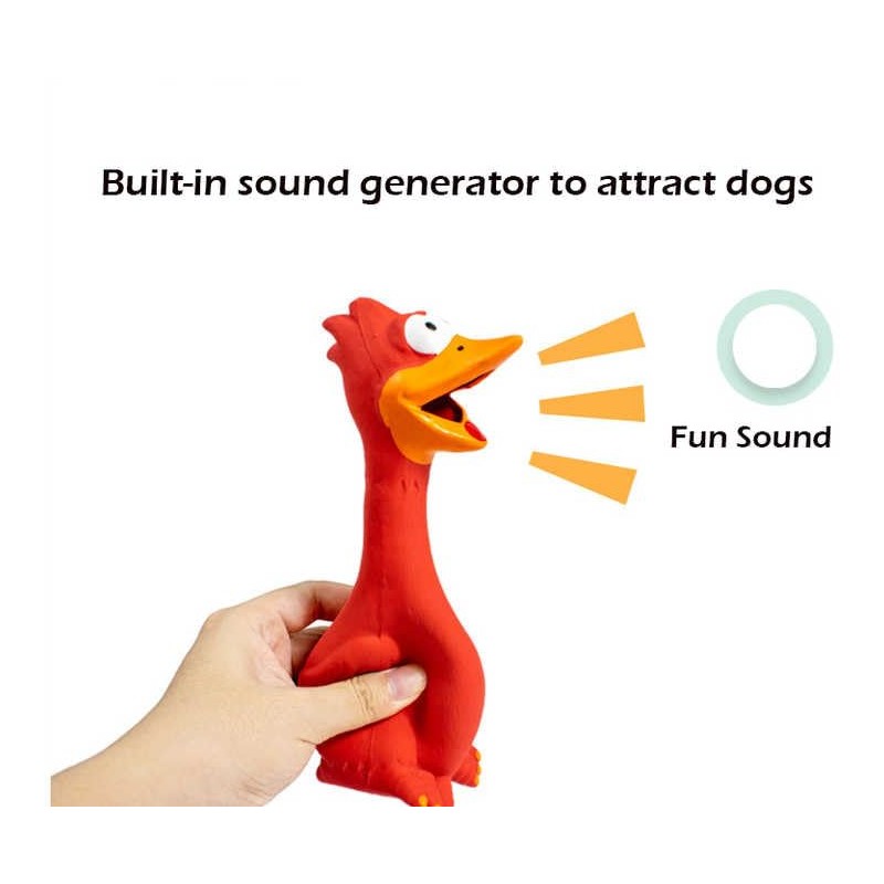 - Squeaky Fun: Watch your dog's eyes light up with joy as they squeeze this latex chicken toy, producing a comical and attention-grabbing screaming sound. The playful noise is sure to keep your pet engaged and entertained, creating moments of sheer delight.