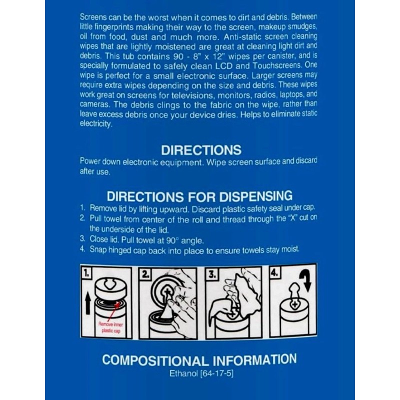 TOWELS 90 COUNT: These non-abrasive towels are specially formulated to remove smudges, streaks, fingerprints, dust, dirt, inks, and other grime from electronic screens and devices. Perfect for TV screens, laptops, tablets, keyboards, cameras, and phones.