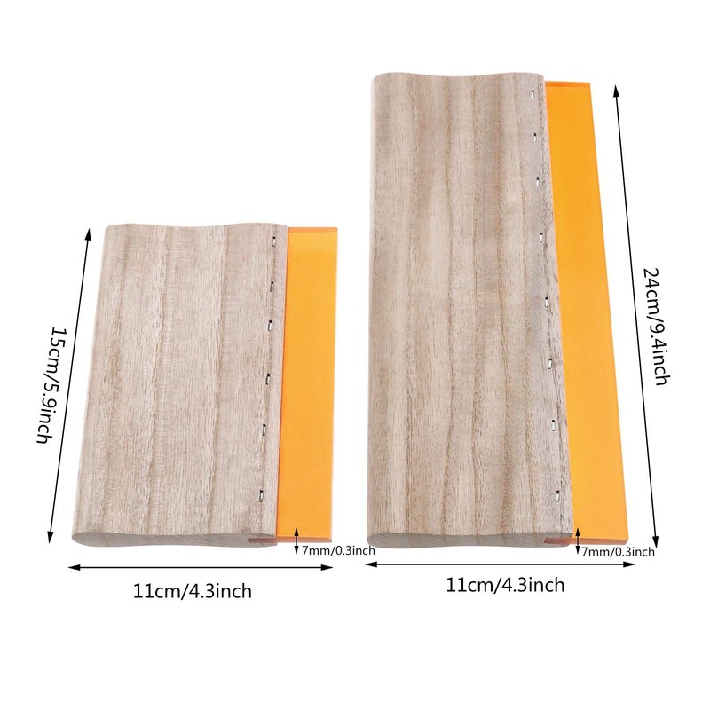 Screen Printing Squeegee Wooden Brush Set 2 Sizes 24cm and 15cm Hand Printing Water Ink Scraper