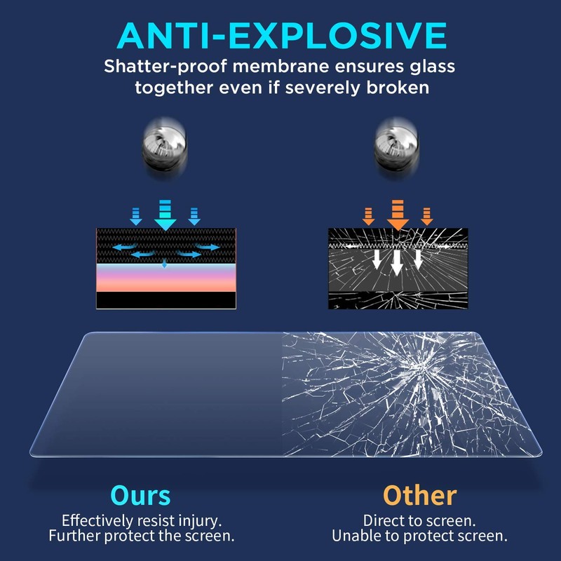 - explosion-proof, strengthen the impact force of the tempered film after high and low temperature alternate tempering treatment, and form a network after burst, greatly improving safety