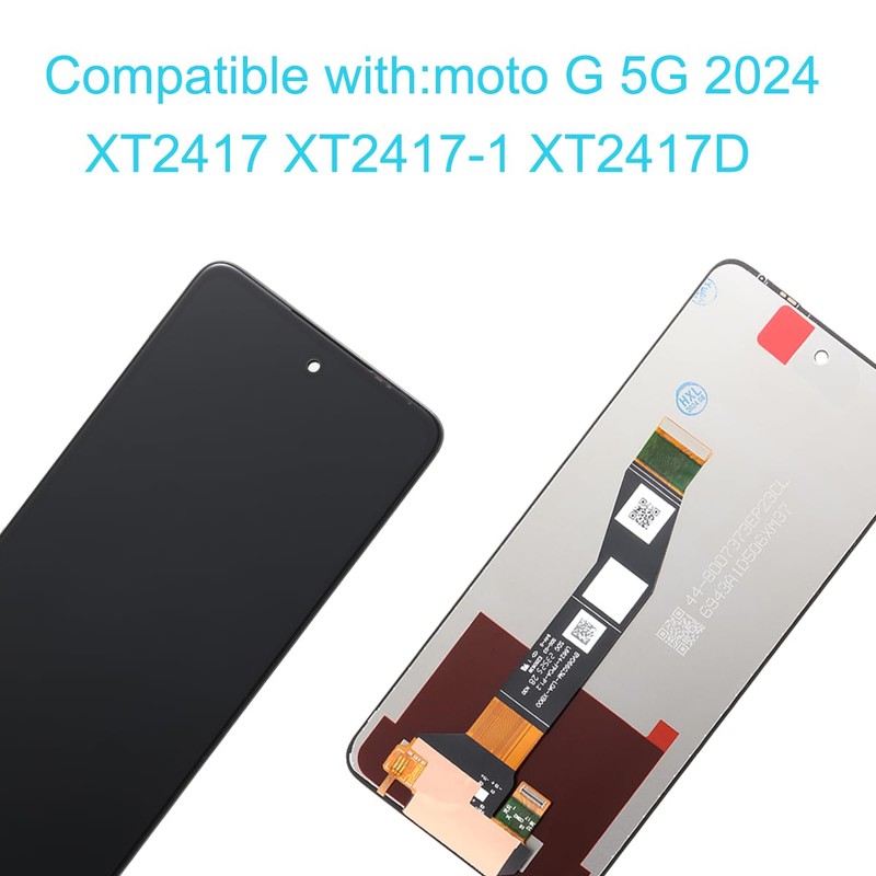- Brand new replacement display screen ONLY for Motorola Moto G 5G 2024 XT2417 XT2417-1 XT2417D 6.6'' (1612x 720, 21.5:9 ratio). 100% compatible with your smartphone. By using this set, you can make your phone work like new. Please check your phone model number before purchasing.