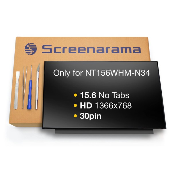 SCREENARAMA New Screen Replacement for NT156WHM-N34, HD 1366x768, Matte, LCD LED Display with Tools