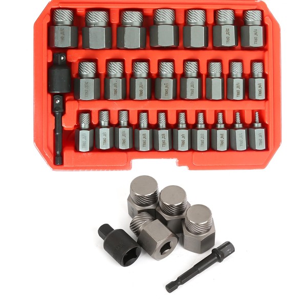 Screw Extractor Set, 27 PCS 3/8" Inch Drive Easy Out Bolt Extractor Set Multi-Spline, for Removing Broken Studs, Bolts, Screws