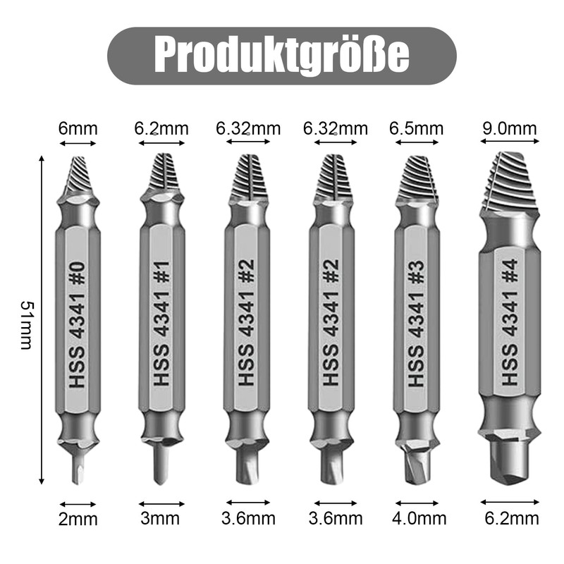- Package contents: each box has 6 sizes of 6 extractors for different requirements. When using, you should choose the appropriate extractor according to the size of the screw.