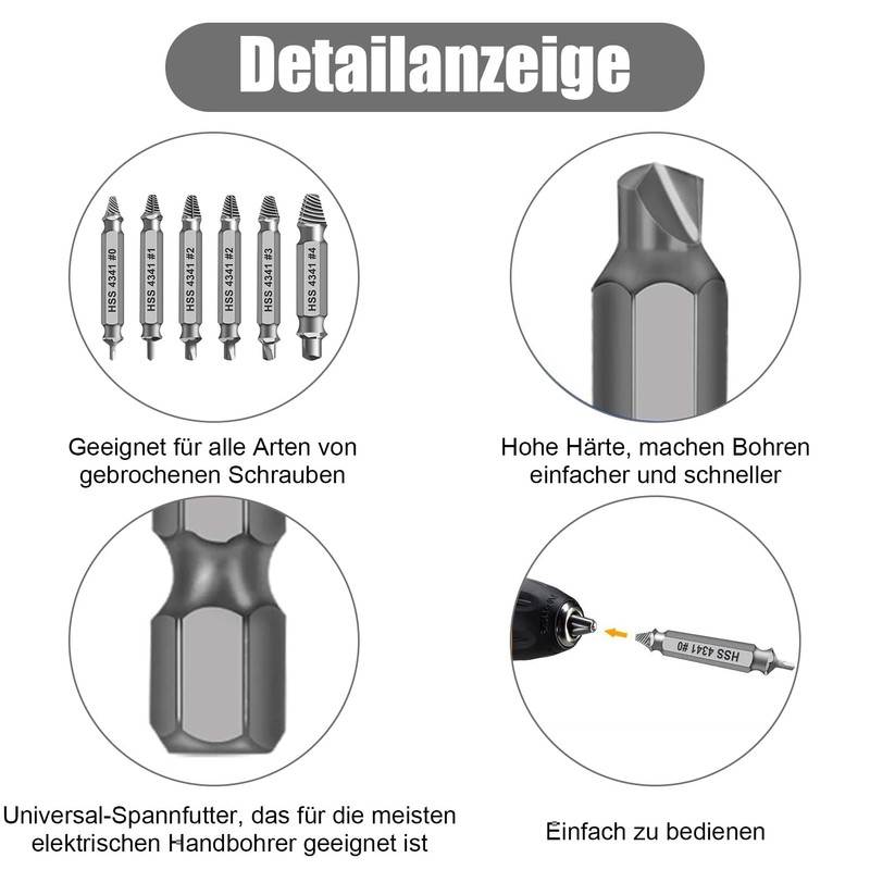 - Extensive application: this screw extractor can be used for almost all types of screw heads. The damaged screw extractor is also suitable for drilling holes in soft materials such as wood and plastic.