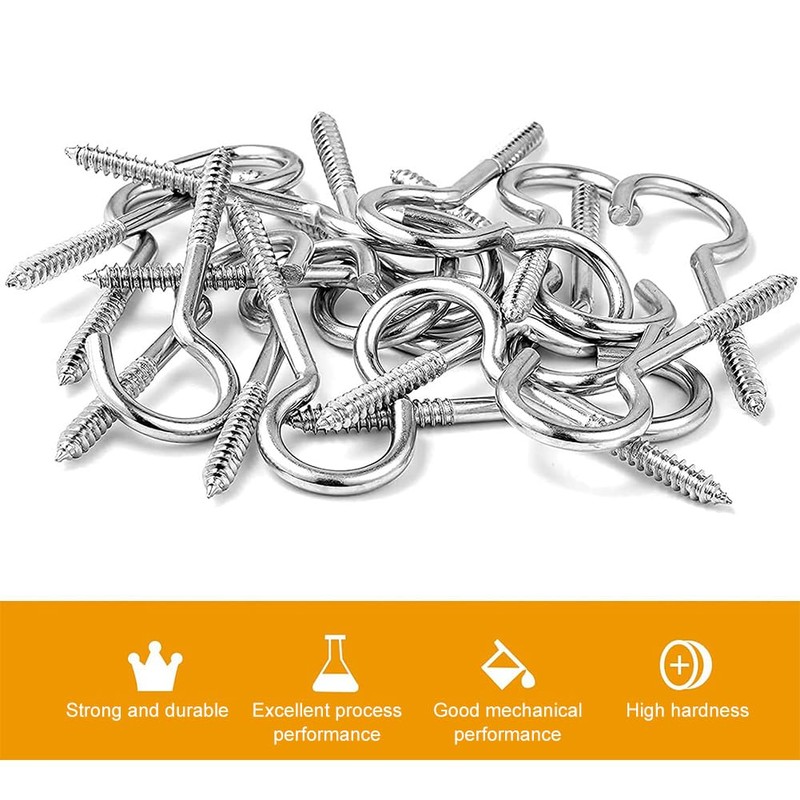 - Premium materials: stainless steel screw hooks that can easily drive into wooden materials such as walls, decks; screw-in hook is solid and durable, with excellent corrosion resistance and rust resistance; screw in hook provides a long service life