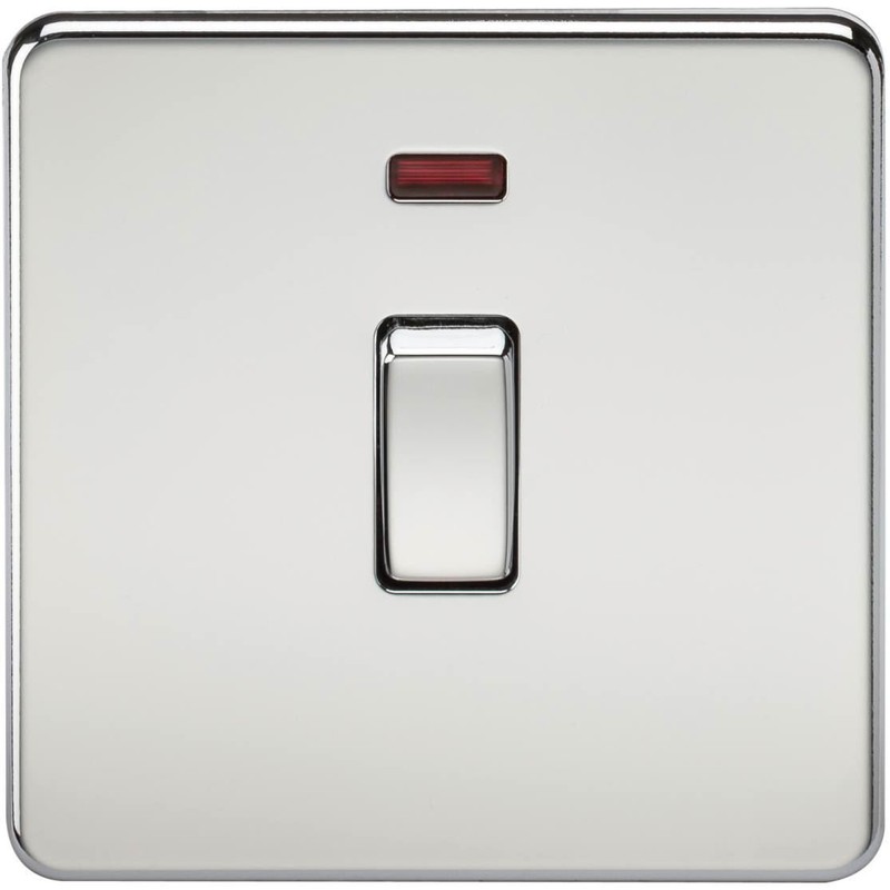SCREWLESS 20A 1G DP SWITCH WITH NEON - POLISHED CHROME