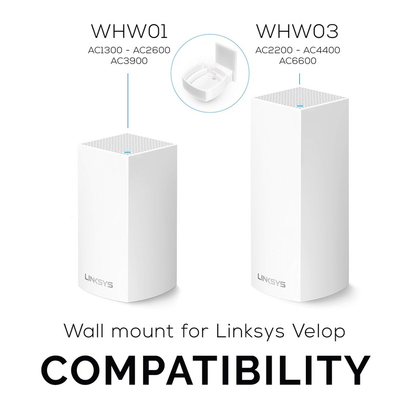 • VELOP WALL MOUNT HOLDER: Designed specifically to securely hold the Linksys Velop Home Wifi Mesh Dual & Tri Band systems in a beacon. Compatible with models: WHW01 (AC1300, AC2600, AC3900) & WHW03 (AC2200, AC4400, AC6600).