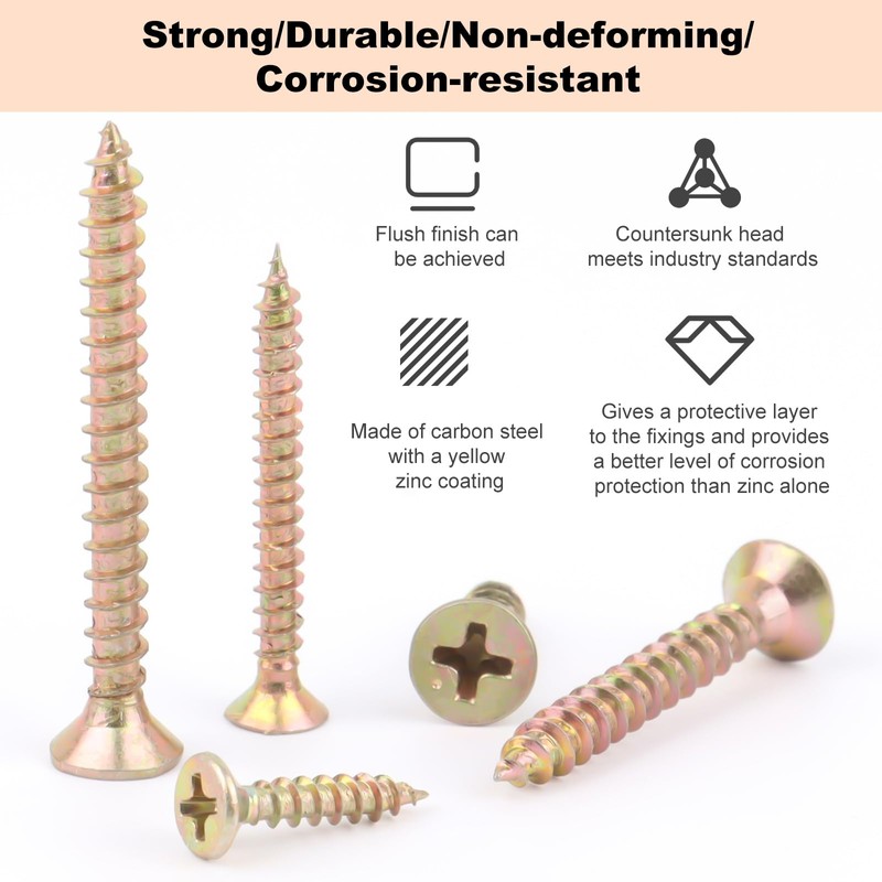 - Excellent material: wood screws are made of high-quality coloured zinc, self-tapping screws are strong, durable, non-deformable and corrosion resistant, metal screws can also be held outdoors for a long time, are first-class self-tapping screws with solid construction and exquisite workmanship, which can retain their metallic shine for a long time without surface modification treatment