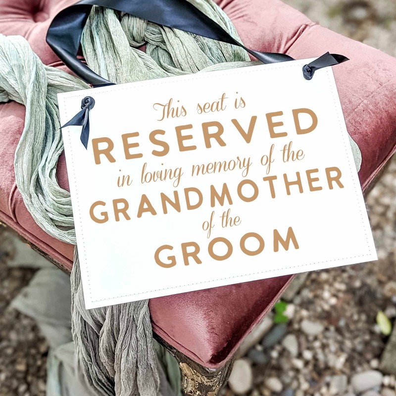 - Memorial Signs: honor those we've lost, ensuring they're remembered and included in your special day