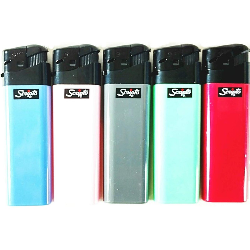 Scripto Electronic Lighters - Pack of 50 with Stand Asst Colors.
