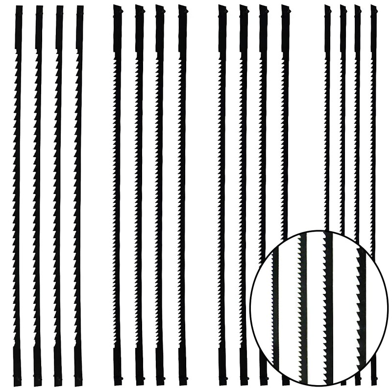- Item Name: Scroll Saw Blades Pinned Set. Blades Types: 10 teeth, 15 teeth, 18 teeth, 24 teeth. Can be used for sawing wood, plastic, foam. 24 teeth fret coping saw blades can cut soft metals with low hardness.