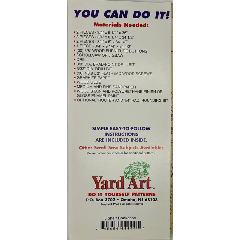 Scroll Saw Woodworking Pattern No. 646 Bookcase with 3 Shelves