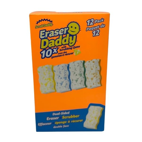 Scrub Daddy - Eraser Daddy 10x with Scrubbing Gems, Dual-Sided Scrubber & Eraser – Water Activated, 10x Longer Lasting, 12-Pack, Made in Vietnam