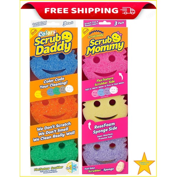 Scrub Daddy Scrub Mommy and Daddy Non-Scratch Cleaning Sponges - 3 pack each