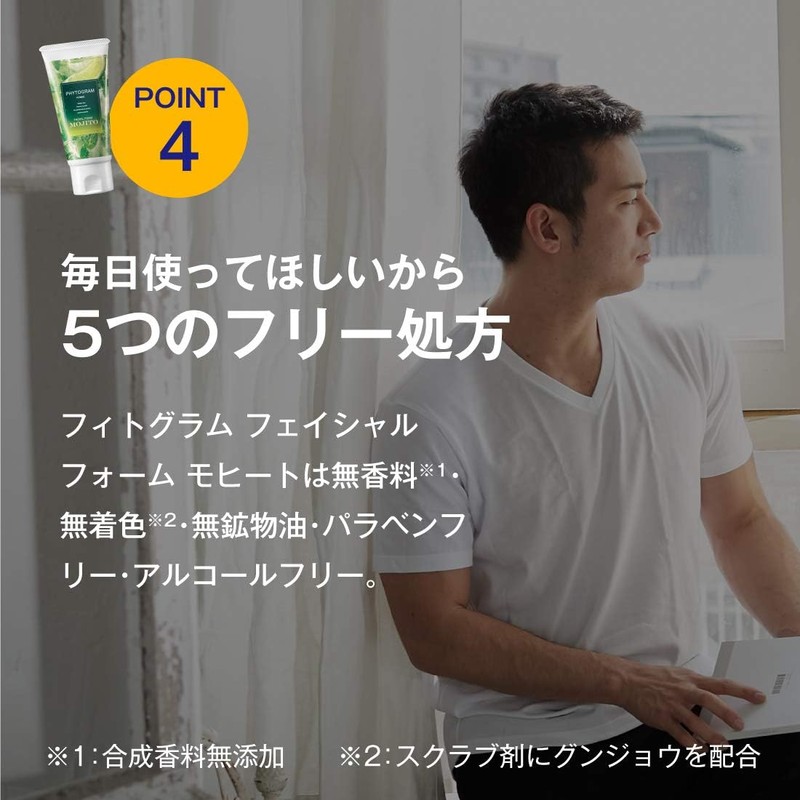 Scrub Facial Foam Mojito 2.8 oz (80 g) (Facial Cleanser, Men's, Scrub, Facial Cleanser, Botanical, Fragrance-free, Color-free, Made in Japan) Phytogram
