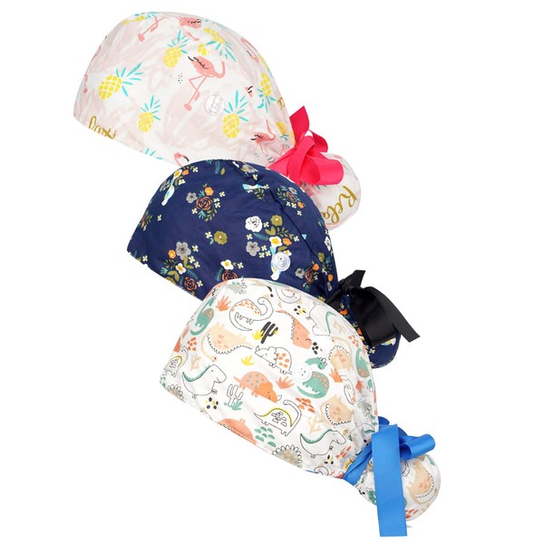 Scrub Hats Women with Buttons,Ponytail Scrub Cap, Working Hat Pink Nursing caps Flamingo Nurse Caps Bouffant