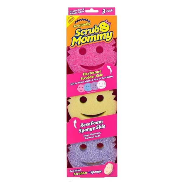 Scrub Mommy&Daday Sponges - Dish Scrubber + Non-Scratch Cleaning Sponges Kitchen, Bathroom + Multi-Surface Safe - Dual-Sided Dish Sponges for Scrubbing - Quantity: 3-Pack