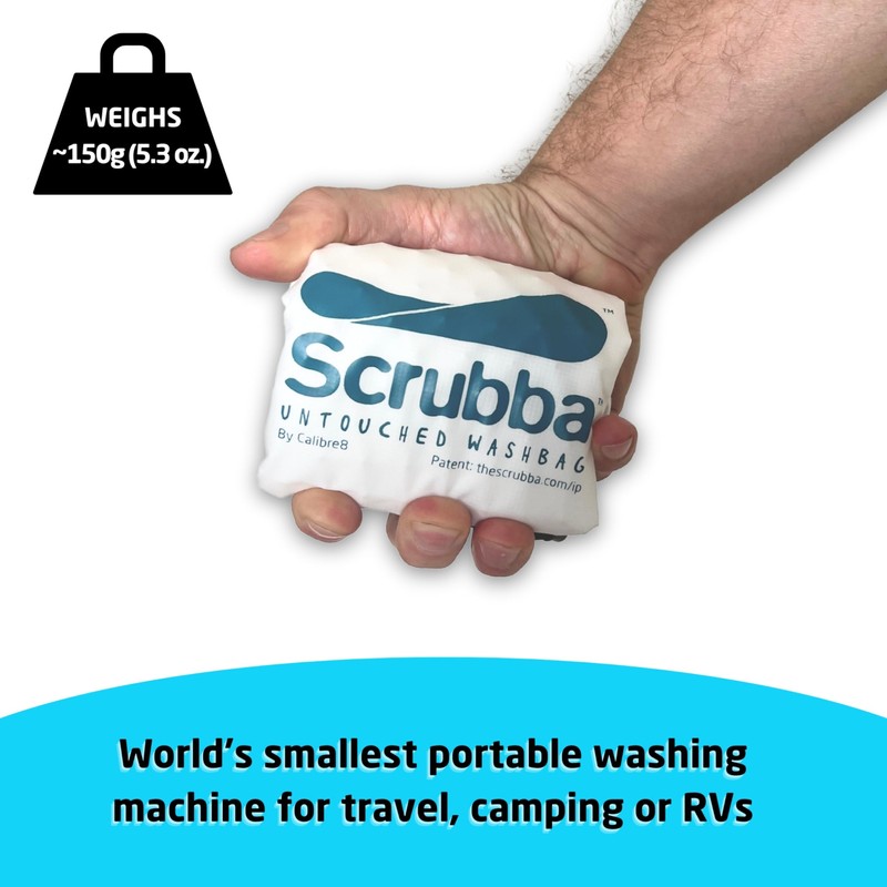- SO SMALL & LIGHT: Ultra-portable at only 5.3 oz. The Scrubba Wash Bag is the world's smallest mini laundry machine. This portable clothes washer folds down to fit in your pocket and takes up no space ensuring you travel clean, light and free.