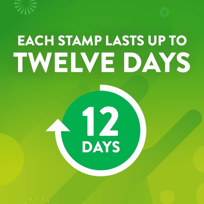 freshens every time you flush, for up to 12 days per stamp. It works amazing