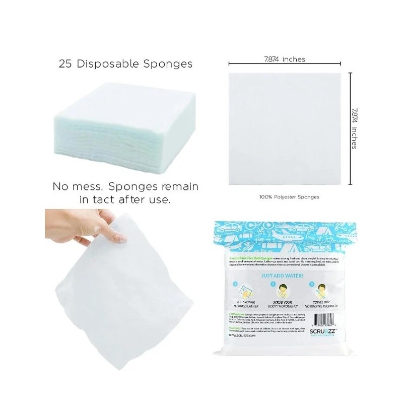 Scrubzz Disposable No Rinse Bathing Wipes - 25 Pack - All-In-1 Single Use Shower