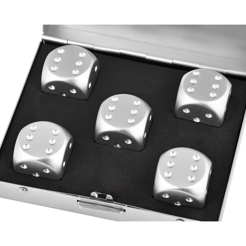 SCSpecial Aluminum Alloy Dice 5 Pieces 16mm Portable Metal Dices with Square Case 6 Sided Dice for Drinking Party Game - Silver