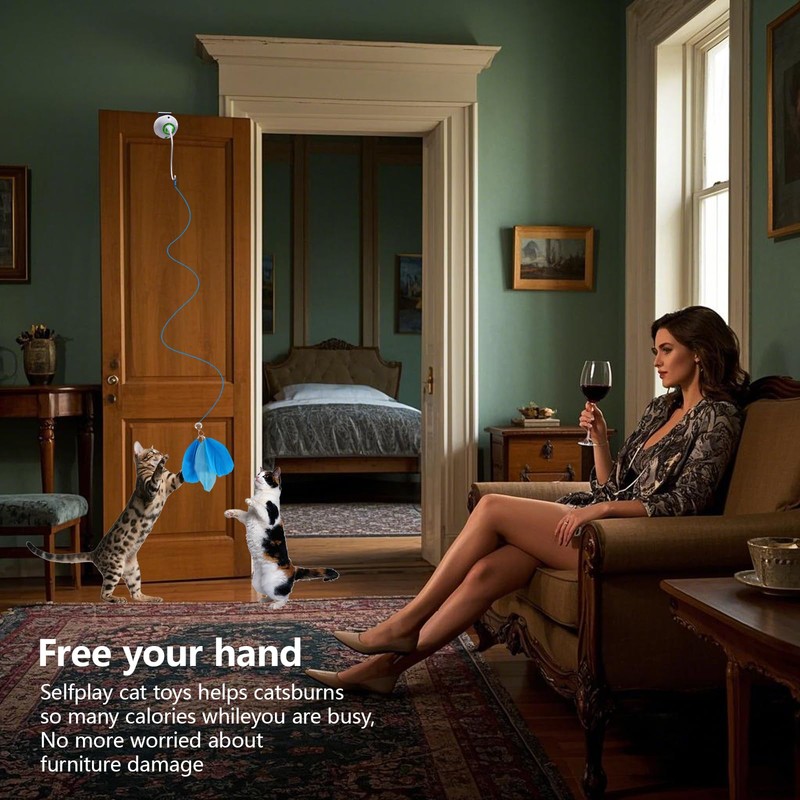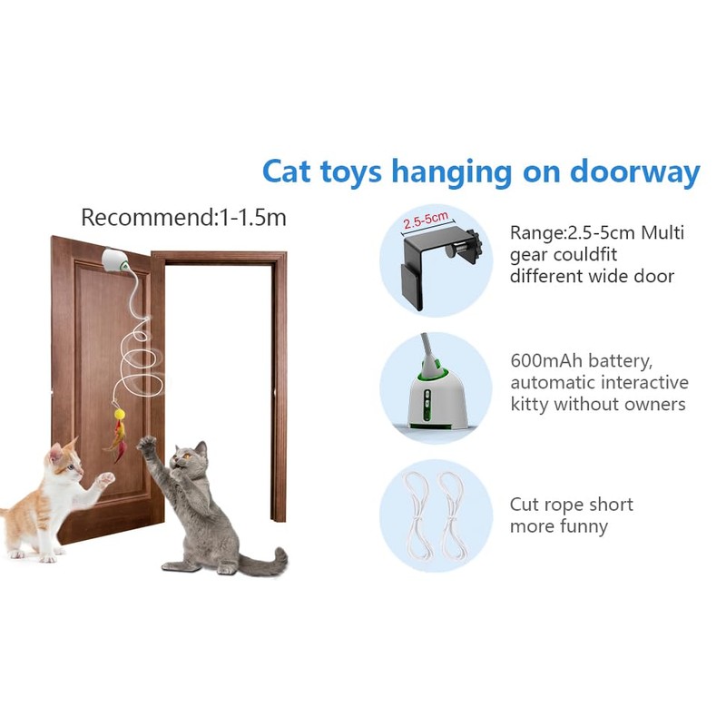 - Versatile and Intelligent:Hanging Door Electric Cat Toys Interactive Feel free to adapt to any cat's favorite rope toy, the owner can be operated remotely to adjust the gear, three speeds, suitable for any character cat, so that ordinary toys can also cause the cat full of vitality.