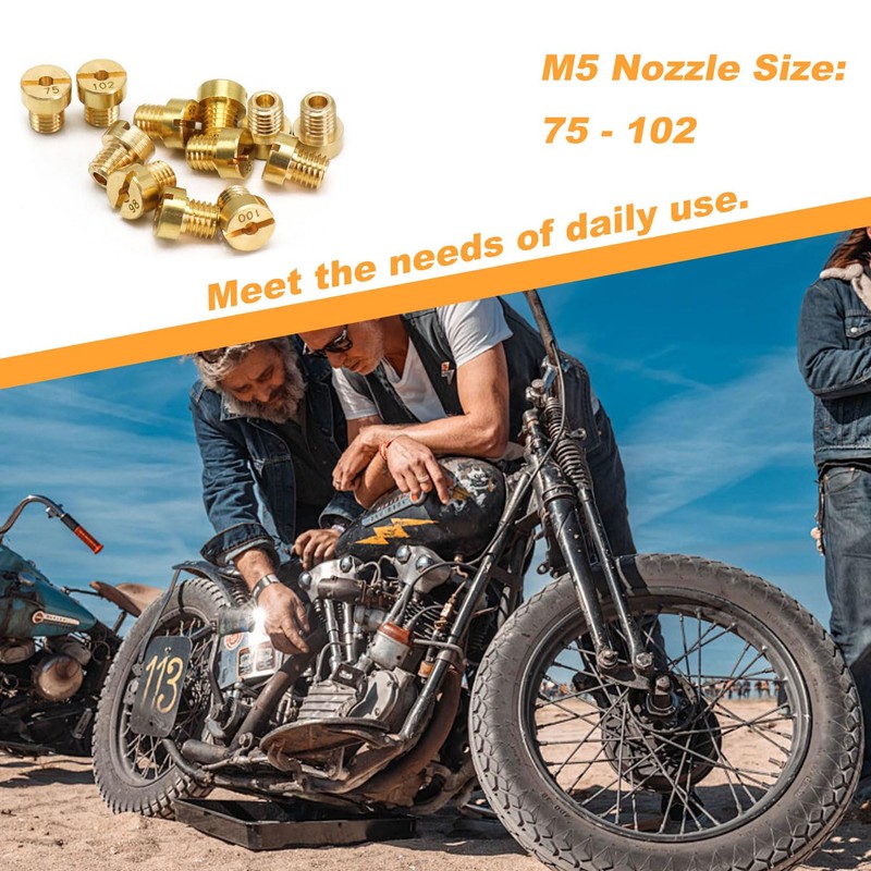 - 12 sizes: M5 carburettor nozzles are available in 12 sizes: 75, 78, 80, 82, 85, 88, 90, 92, 95, 98, 100, 102. to meet your different usage requirements.