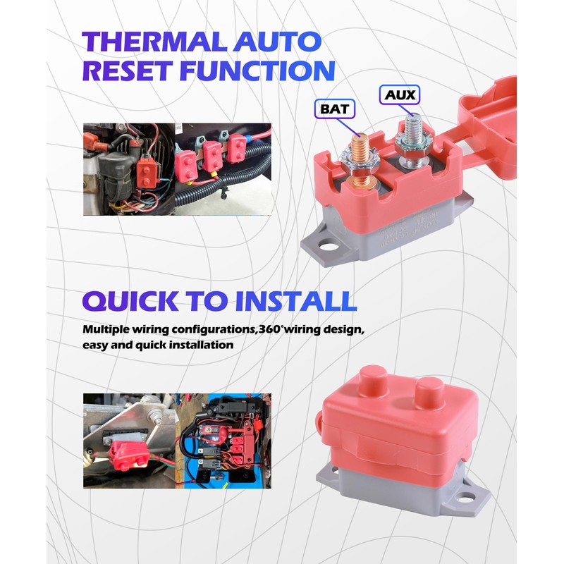 - [Easy to Use]: The car circuit breaker is easy to use and has a thermal automatic reset function, which can effectively protect the fuse from melting when the electrical short circuit or overload occurs. It is safe and reliable.