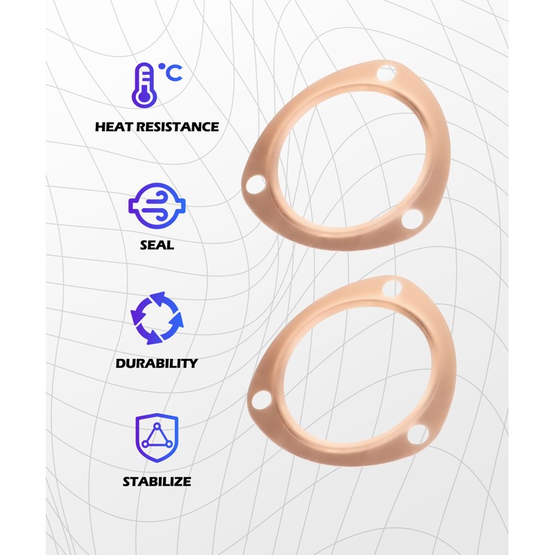 SCUARI 2PCS Exhaust Flange Gasket,Car Accessories Header Gasket,3 Inch Copper Header Exhaust Collector Gaskets,Automotive Exhaust Systems & Parts,Fits All Header Collectors with 3 Bolt Mode (3inch)