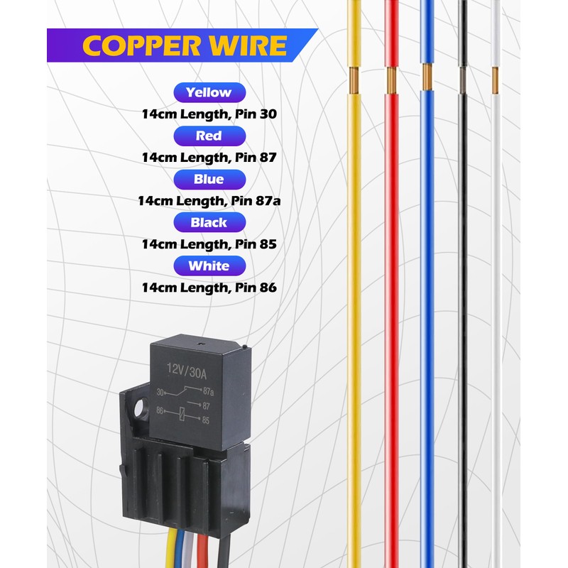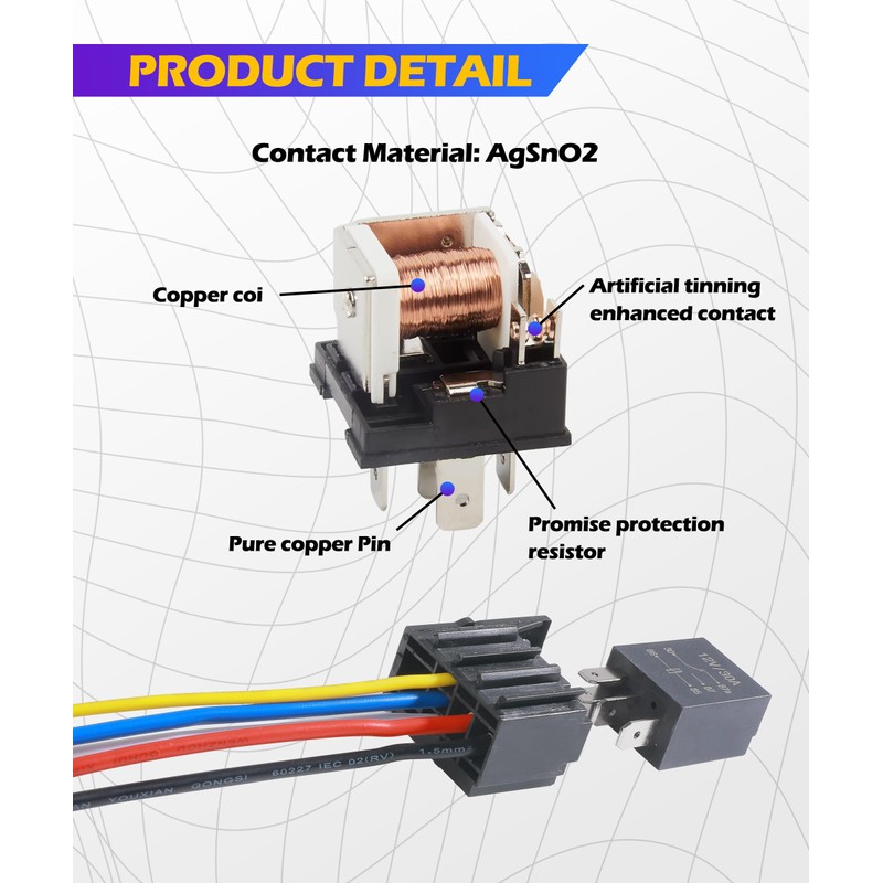 • [Easy Wiring]: 12V relay equipped with color-coded wires for easy load/accessory wiring. The interlocking mounting design of the unique male and female grooves on the edge of each socket connects the relays together and easily manages the cables, providing a clean and tidy installation.