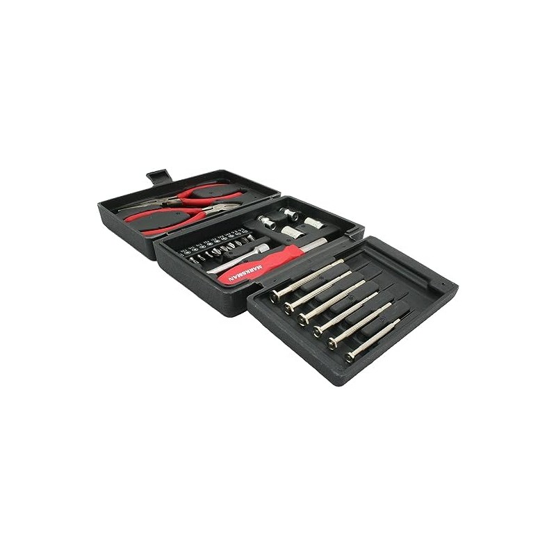 - 26pc Mini Trifold Tool Kit consisting of 1 x T10, 1 x T15, 1 x T20 Star Torx. 1 x 5.5mm, 1 x 6.5mm slotted precision screwdriver. 1 x PH1, 1 x PH2 1 x PZ1 1 x PZ2 cross point precision screwdriver. 1 x socket adaptor