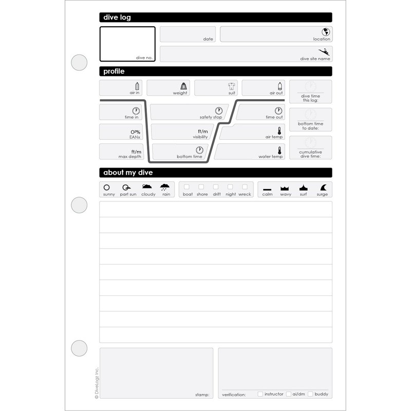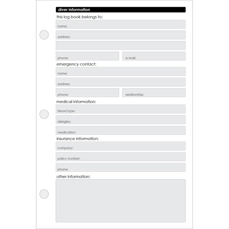 - Record Nitrox and cumulative dive times. Standard sized and binder-friendly