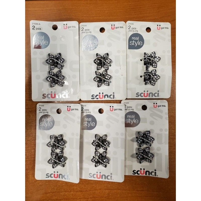 scünci 6 Packs of 2: Scunci Real Style Jaw Clips Flower Bling Studded (5300) R7P7b