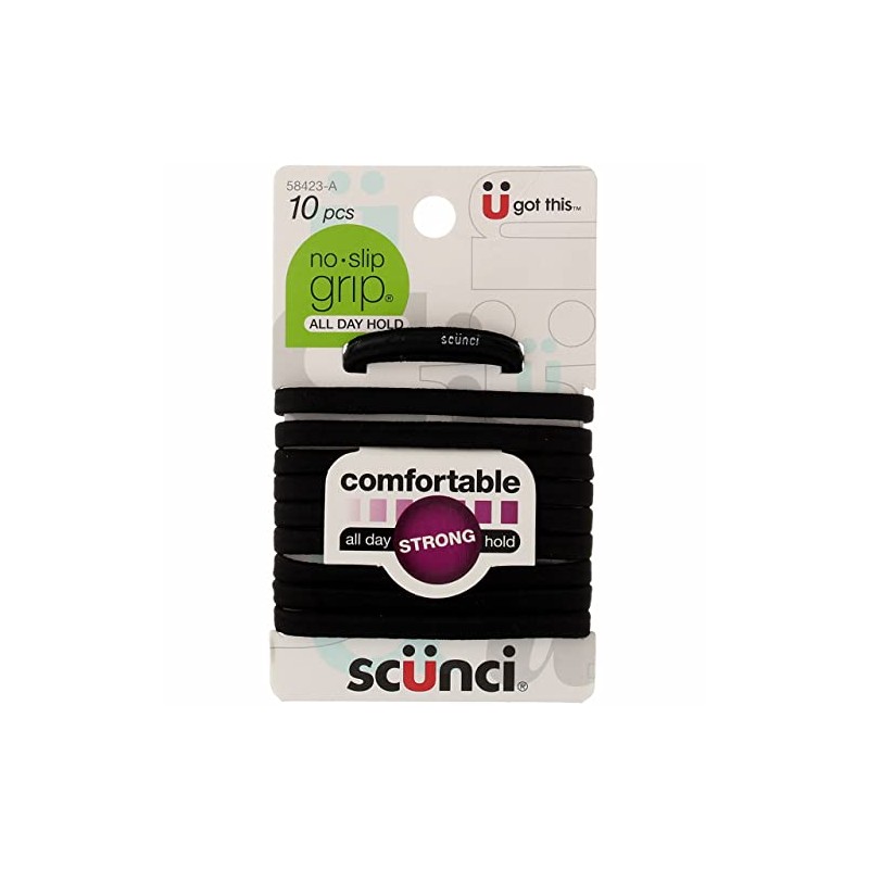 **Just For You:** All hair types **A Closer Look:** Scunci No Slip Elastic Hair Bands are made with a no-slip grip lining that helps them to efficiently hold the hair tightly throughout the day. **Get Started:** Pull your hair back and tie it with this accessory.