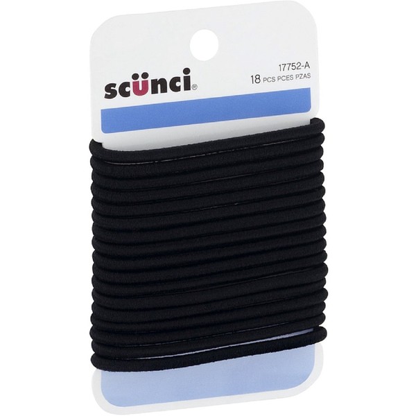 Scunci No Damage Large Black Hair Elastic 18 ea (Pack of 8)