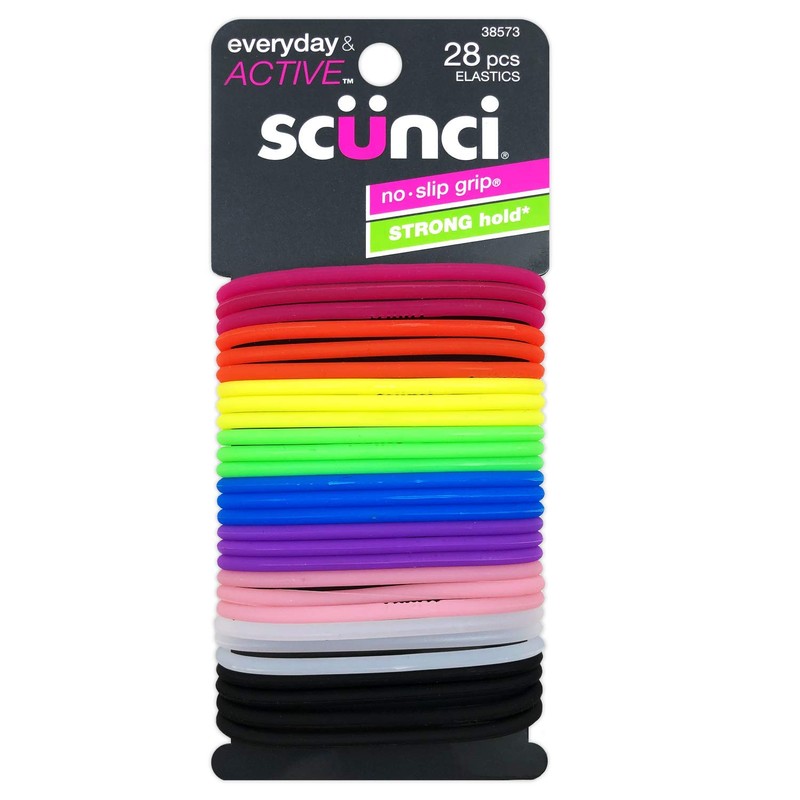 Scunci No-Slip Grip Gel Evolution Ponytailers Elastics, Assorted Colors, 28-Pieces (1-Pack)