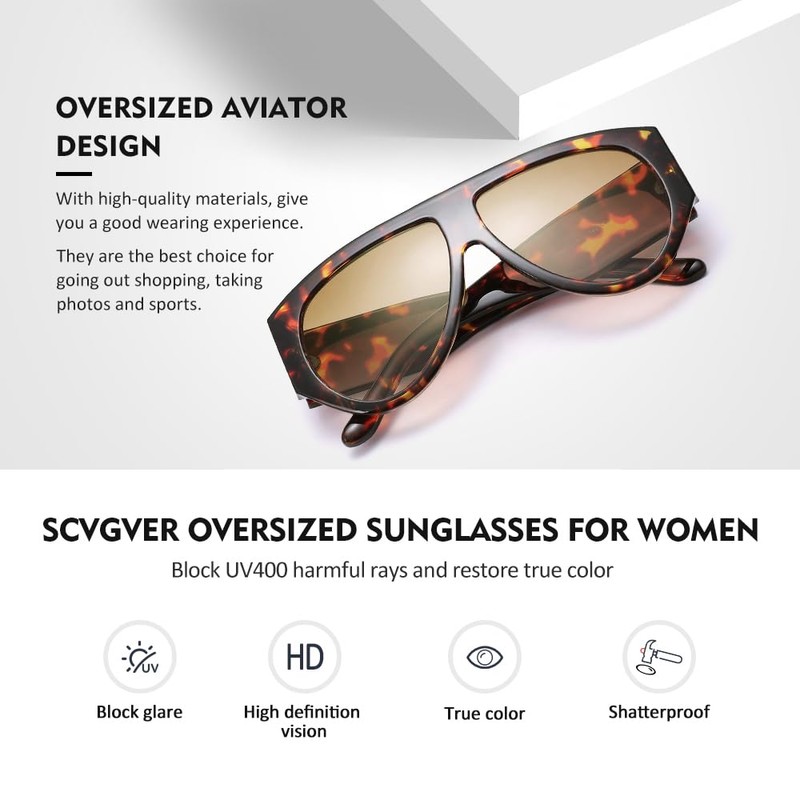 SCVGVER Oversized Sunglasses Womens, Aviator Sunglasses for Women Men, Retro 70s Shades Glasses, UV400 Protection(Tortoiseshell Frame - Gradient Brown Lens)