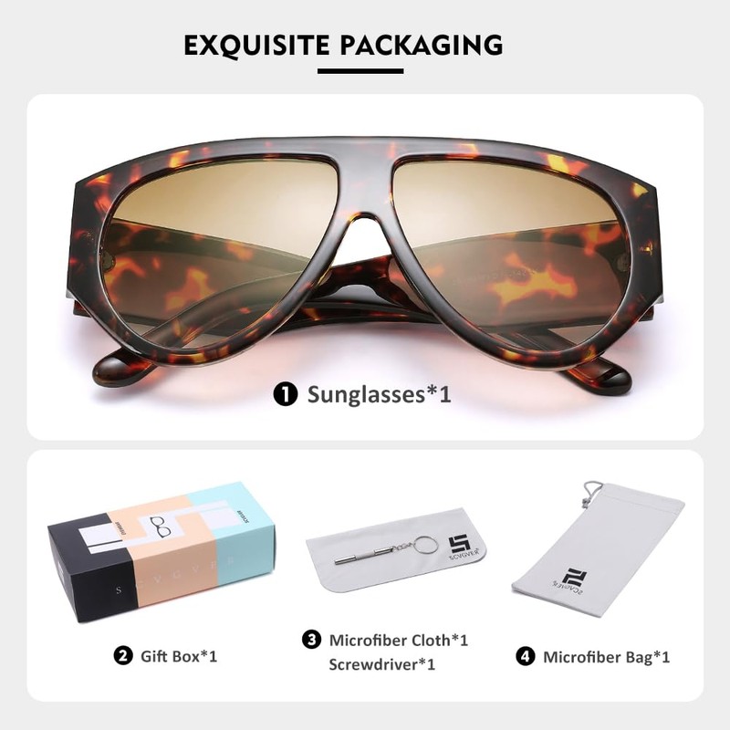 - Oversized Aviator Design - The womens oversized sunglasses uses the retro aviator sunglasses design shape, trendy and retro 70s glasses, let you add fashion at the same time, but also let a bit of artistic atmosphere, let you stand out in everyday wear and go out activities. These UV400 protection shades are suitable for all faces, designed in a variety of colors, suitable for everyone to wear.